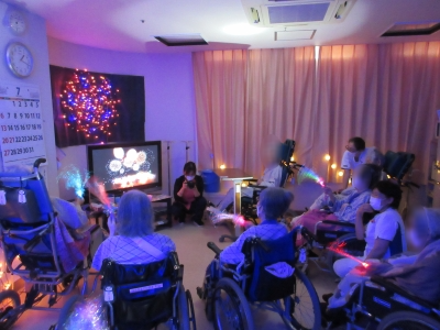映像での花火鑑賞会などを行い、楽しい時間をお過ごし頂けました。